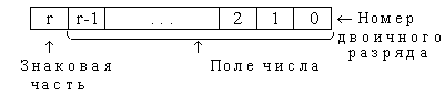 Так как числа бывают положительные и отрицательные, то формат (разрядная сетка) машинного изображения разбивается на знаковую часть и поле числа (рис. 7.1).