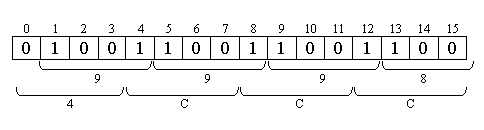 Пример 5. Компьютер имеет 16-разрядную ячейку памяти. Для чисел с ПТ 10 двоичных разрядов отводится для изображения мантиссы, 4 - для изображения порядка. Система счисления 2, 10, 16. Представить изображение числа - 9,610. Результат записать шестнадцатеричными цифрами (компактная форма). Решение. Представим разрядную сетку (r = 16):