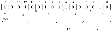 Естественная форма представления числа в ЭВМ характеризуется тем, что положение его разрядов в машинном изображении остается всегда постоянным независимо от величины самого числа. Другое название этой формы - представление с фиксированной точкой - ФТ (запятой) (имеется в виду запятая, отделяющая целую часть от дробной). | |||||