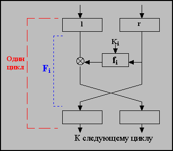циклов) и выходом шифра является получившаяся в конце пара (l,r) Графически